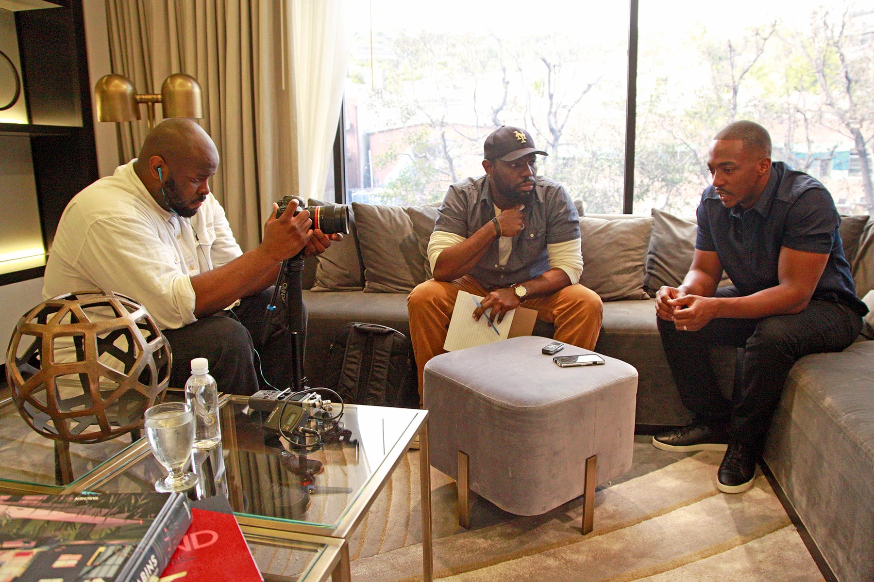 For Anthony Mackie, who has played Captain America’s right-hand man in crime fighting, Sam Wilson, a.k.a. Falcon, since Captain America: Winter Soldier in 2014, this sect of fandom has its pros and cons. “I love it when kids come up to me [and] want to take a picture,” says the 37-year-old actor. “The weird thing is the adults. They just do stuff that ain’t right. I’ve never had a chick come up to me and say, ‘Oh my God, you’re in this movie.’ Never happens. It’s always a dude who comes up to you and whispers, hot breath in your ear, ‘Yo, man…I like your movies.’ That’s why the whole fandom thing is so weird.”